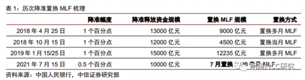 今年7月降准0.5个百分点,释放资金1万亿元,置换7月份的3000亿元MLF到期。从置换规模看,置换到期的MLF规模是历次降准置换MLF规模最少的,且MLF余额仍然维持高位。
