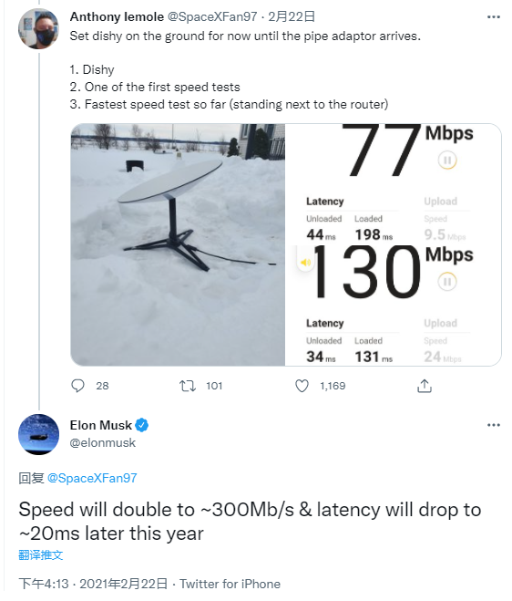 马斯克本人在今年二月在社交媒体上曾表示,星链网络的速度有望在今年晚些时候翻倍至300Mbps,而延迟则会低于20ms。而在星链官网的描述中,也包含“大多数区域的用户可以期待下行速度在100-200Mbps之间”这样的描述。按照这个标准,不管是马斯克还是公司,相关的承诺都未达成。