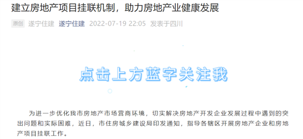 据“遂宁住建”官微消息,近日,遂宁市住建局印发通知,指导各辖区开展房地产企业和房地产项目挂联工作。