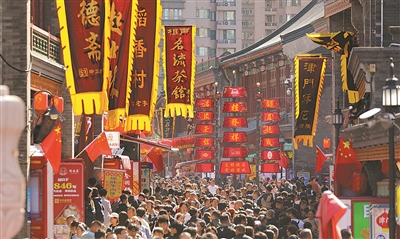 天津古文化街上游人如织。