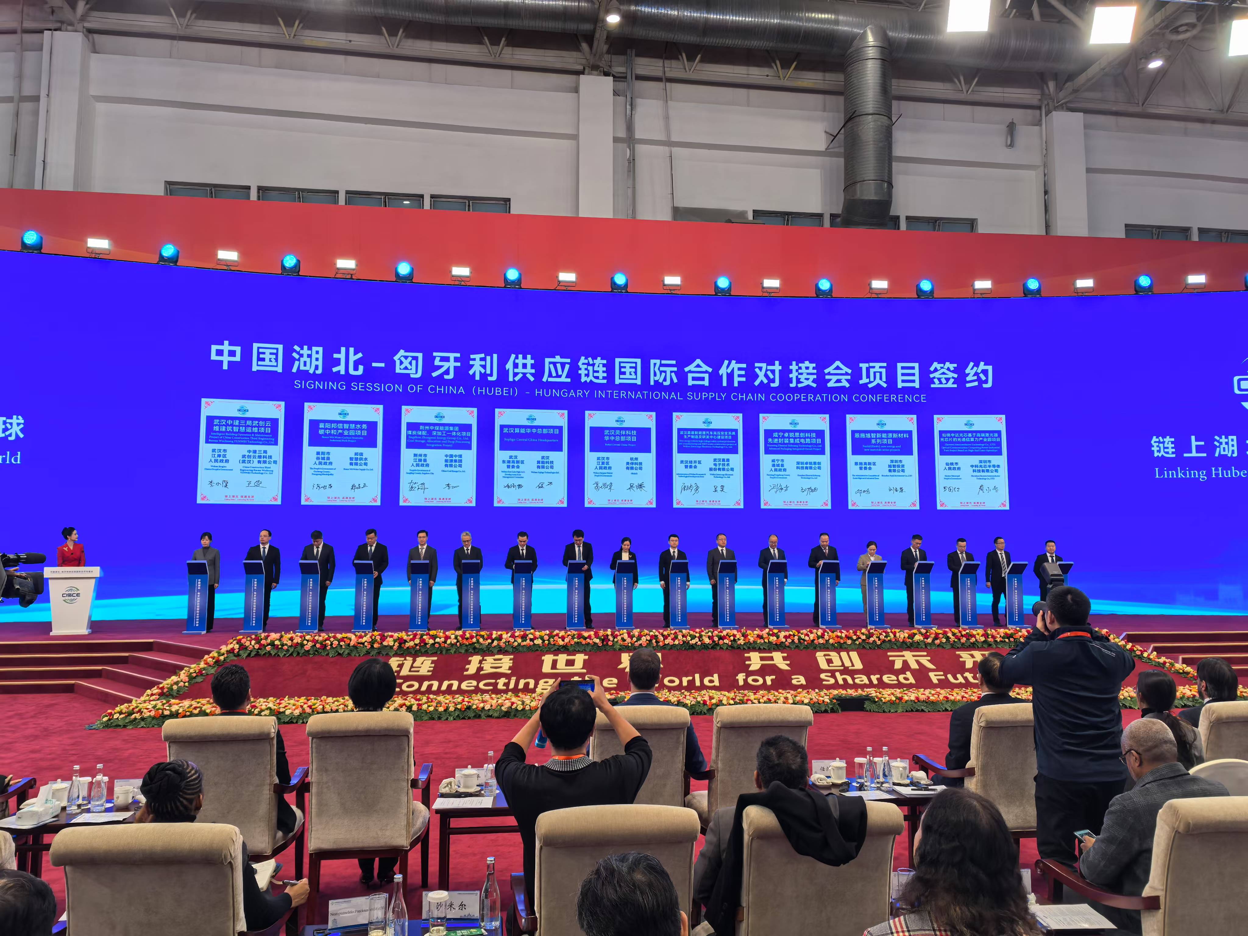 第二届链博会中国湖北-匈牙利供应链国际合作对接会项目签约现场。人民网 唐佳摄