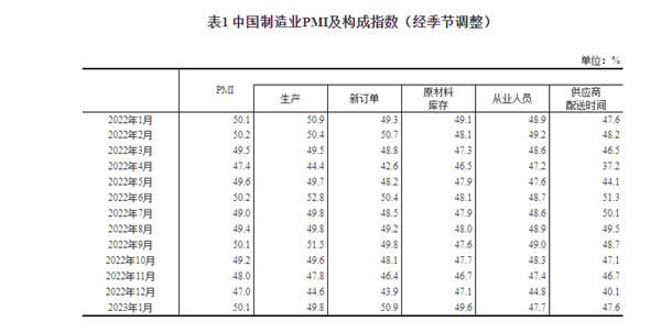 2023年1月中国采购经理指数运行情况