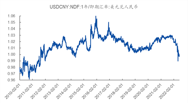 其次,外汇占款在近期也有适度上升的可能性。在2020年之后,银行结售汇顺差和央行的外汇占款之间出现了一个明显的裂口:银行结售汇顺差的中枢有所上抬,但央行外汇占款却一直呈现出极低速增长的状态。这意味着:在2020年之后,商业银行体系积累了大量的外汇头寸,且没有及时结汇。而今年以来,这些外汇头寸是有可能加速结汇的,其背景是:市场对人民币的预期非常乐观,NDF的贴水率不断下降,如果预期和头寸的条件都存在,外汇占款是存在适度充裕的可能性的。
