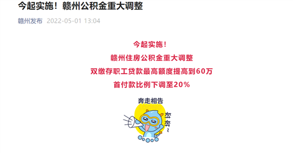 另外,赣州市于5月1日提高公积金贷款最高额度到60万,首次使用住房公积金贷款或购房提取住房公积金的,首付款比例下调至20%。同日,建行赣州市分行首套房贷利率下调至5.2%,二套房利率下调至5.35%;购房者年龄放宽至70周岁;首付比例调至国家政策规定最低比例。
