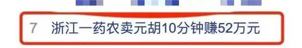 发布时间:2025-11-16 | 发布者: 东东工作室 | 浏览次数: 次6月24日话题#浙江一药农卖元胡10分钟赚52万元#,登上热搜,引发关注