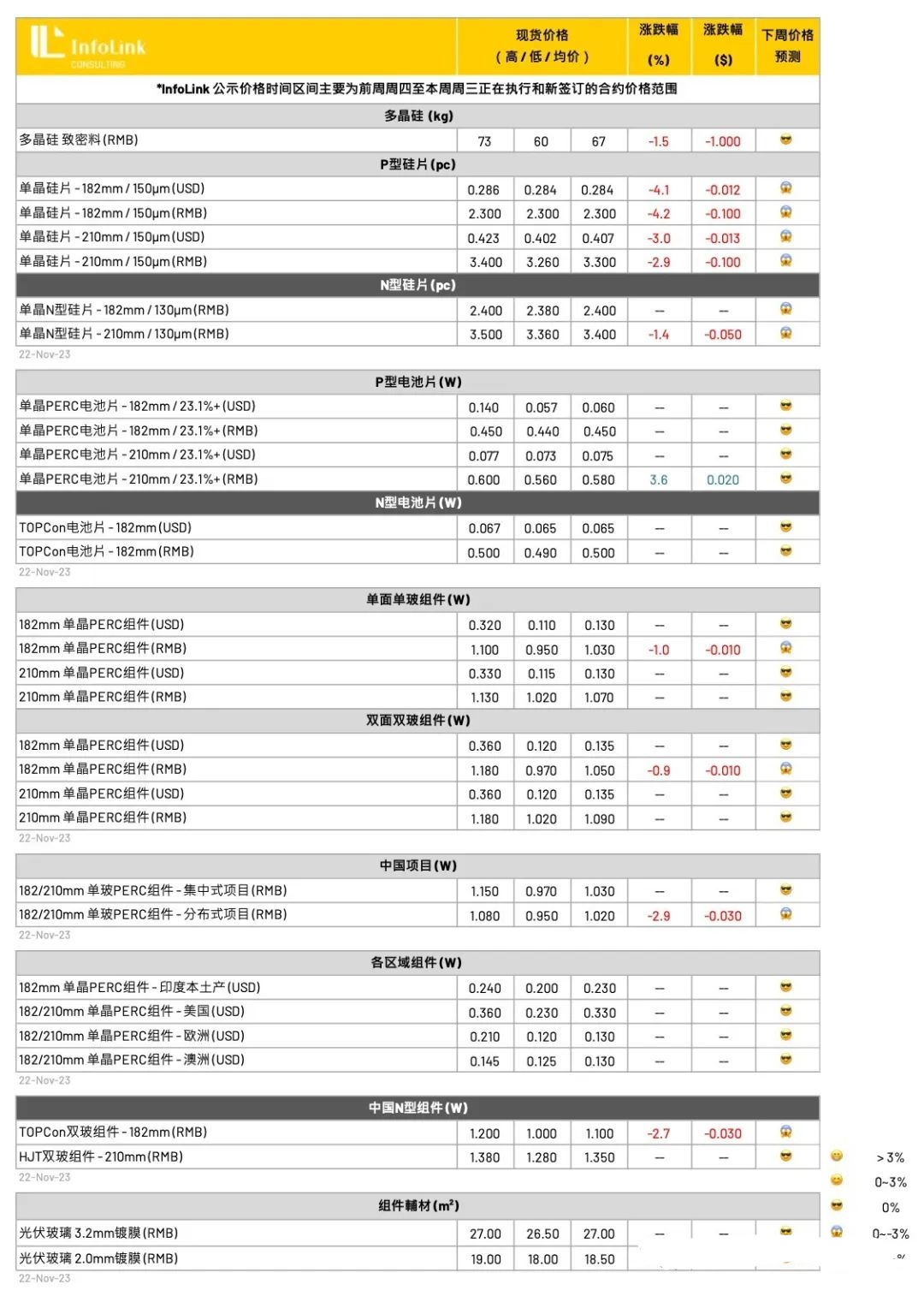 展望后势,伴随着年底硅料/硅片的跌价,预期近期电池片仍有机率跌价,而该环节关注的重心仍是组件环节年末的排产规划,将很大程度的影响年底的电池供需变化。