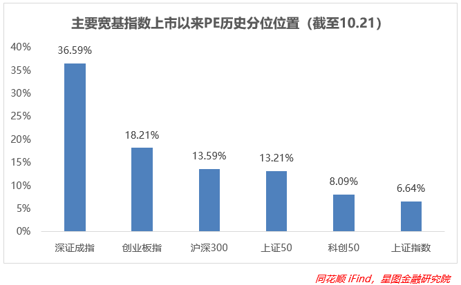 从上市以来分位值来看,板块出现分化,成长占据上风。创业板指、科创50、深证成指估值改善较大,沪深300和上证50由于权重股的拖累跌幅较深,估值已经下探到近两年的新低,步入“机会”区间;而且深证成指和创业板指估值也在向“合理”区间回归,其余指数估值依旧偏低。