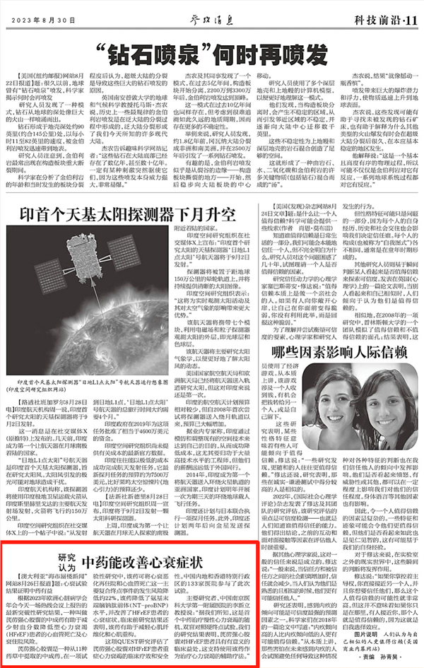 发布时间:2025-12-19 | 发布者: 东东工作室 | 浏览次数: 次8月30日,《参考消息》刊发文章《研究认为中药能改善心衰症状》。