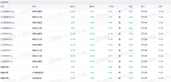 发布时间:2025-12-19 | 发布者: 东东工作室 | 浏览次数: 次证券之星新能源车行业周报:据上海有色网,本周五SMM磷酸铁价格为1.17-1.23万元/吨,均价1.20万元/吨,较上周五跌100元/吨。本周,磷酸铁价格下跌。因下游订单变数较大,磷酸铁月度谈单较谨慎,为获得市场份额,磷酸铁厂被迫让“利”出售。本周,原料价格稳定,企业生产成本稳定,相对销售价格,成本高企。原料端,磷酸铁按需生产,新产线集中在年底前调试完毕,市场供应量充足。需求方面,四季度需求惨淡,对磷酸铁的需求量有所减少。随着月度谈单的结束,散单的成交亦趋于平淡,预计,下周磷酸铁价格持稳。