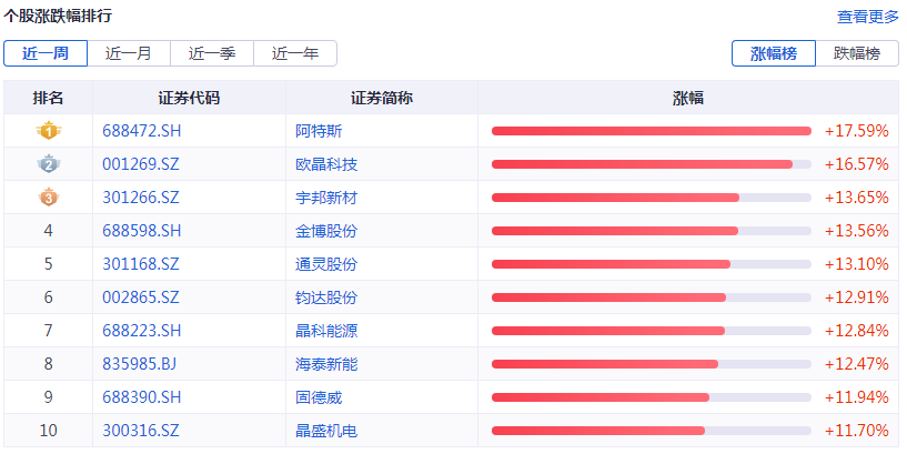 发布时间:2025-12-19 | 发布者: 东东工作室 | 浏览次数: 次证券之星光伏行业周报:中国有色金属工业协会硅业分会数据显示,本周多晶硅价格跌幅收窄,市场成交回暖。中邮证券观点指出,国内需求持续超预期,光伏产业链有望加速出清。宏观方面,国家发改委印发《国家碳达峰试点建设方案》,提出在全国范围内选择100个具有典型代表性的城市和园区开展碳达峰试点建设,探索不同资源禀赋和发展基础的城市和园区碳达峰路径,为全国提供经验做法,助力实现碳达峰碳中和目标。首批国家碳达峰试点名额已安排35个。企业方面,继首个1GW异质结光伏组件合同签订并完成100MW交付后,11月7日,爱康科技再次和欧洲客户签署了1GW的异质结光伏组件销售合同。双良节能发布公告称,收到公司实际控制人缪双大通知,终止向其子缪文彬转让其持有的双良集团、双良科技和江苏利创的部分股权相关安排。