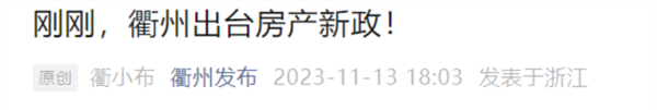 11月13日,“衢州发布”公众号发布了《关于优化政策举措促进房地产市场平稳健康发展的通知》,从促进住房消费、加大金融支持等5方面提出14项措施。
