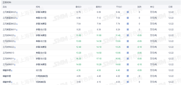 正极材料价格