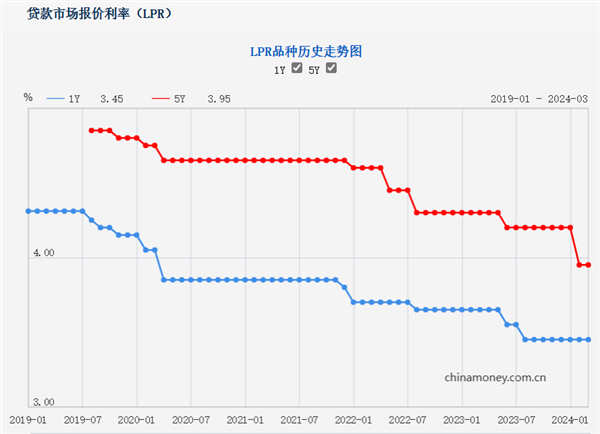 3月20日上午,中国人民银行授权全国银行间同业拆借中心公布,2024年3月20日贷款市场报价利率(LPR)为:1年期LPR为3.45%,5年期以上LPR为3.95%。以上LPR在下一次发布LPR之前有效。