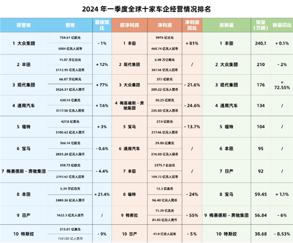 贾博士所贴之图,看上去国际车企巨头利润总额比较高,中国车企利润不高。但国际车企巨头利润高,是今年一季度利润高的吗?它们已占据全球市场多年,长期是这一利润级别。再细看,国际车企巨头一排的一季度净利润同比下滑,因为全球经济环境,更因为中国汽车这一挑战者的崛起。