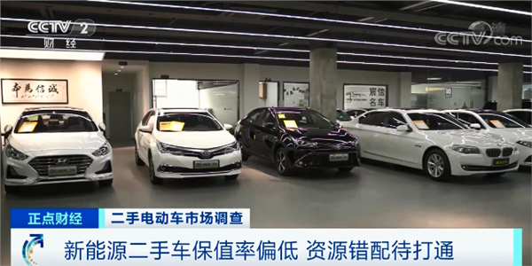 在浙江杭州最大的二手车交易市场,记者注意到,一些新能源二手车被摆放在显眼的位置,车上摆放着醒目招牌,即使这样也鲜有人问津,车身已落满灰尘。